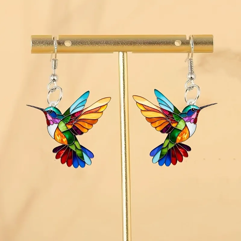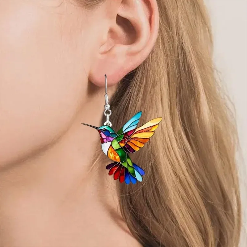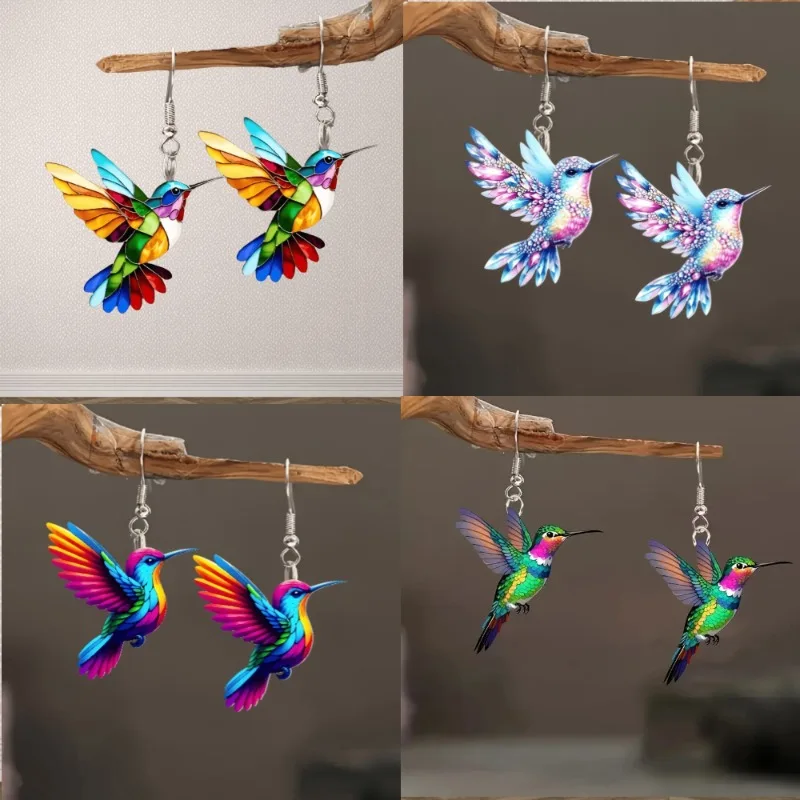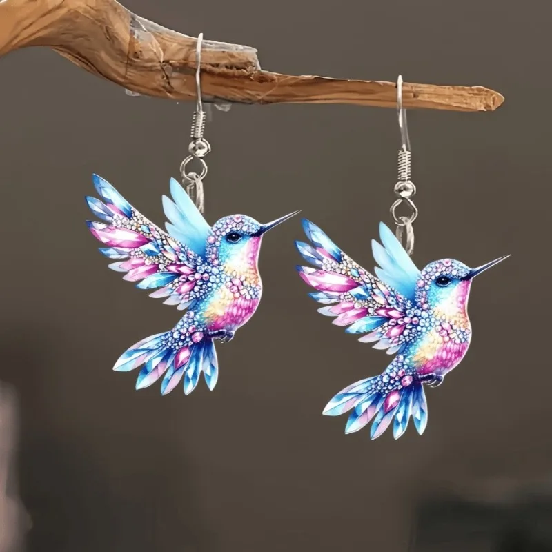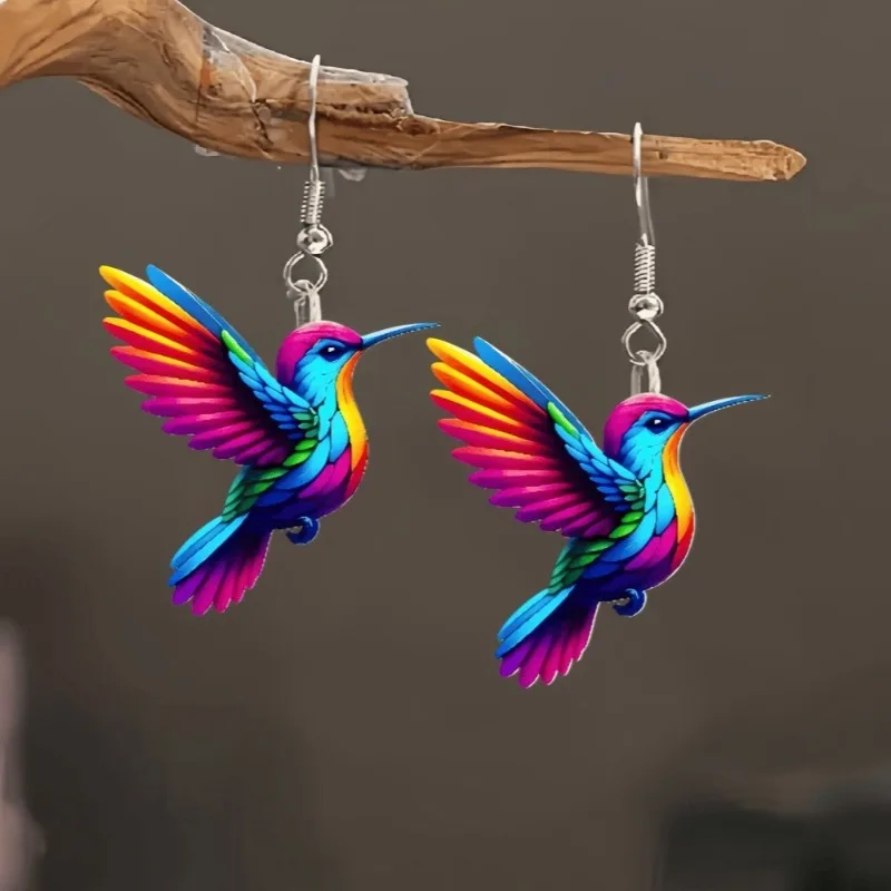 Acrylic Hummingbird Earrings 2D Bird Shape Earrings for Women Girls Ear Charms Spring Summer Drop Dangle Jewelry Gifts Accessory