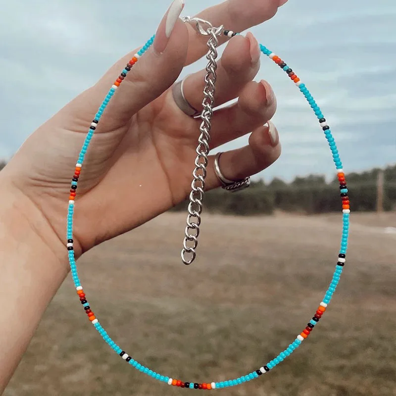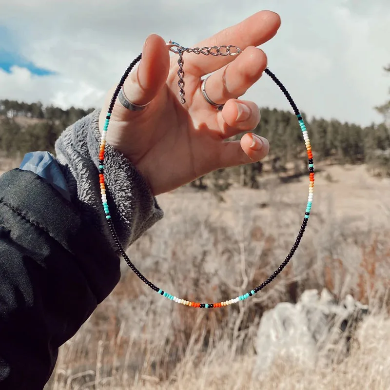 Midnight Lights Boho Western Dainty Beaded Seed Bead Choker White and Gold Choker