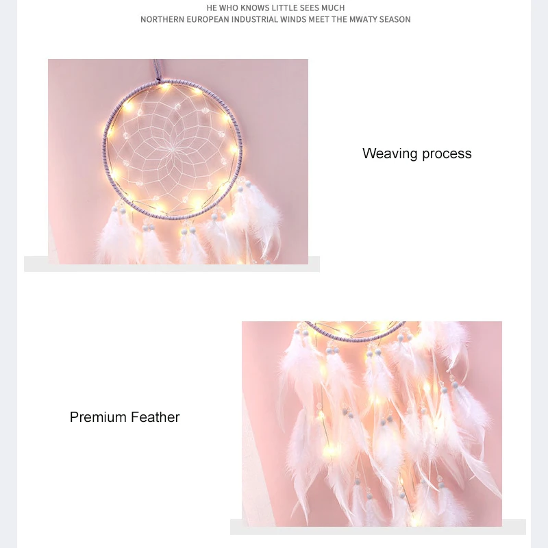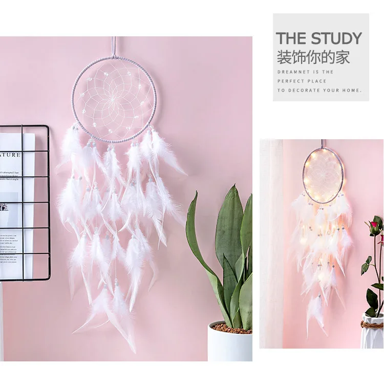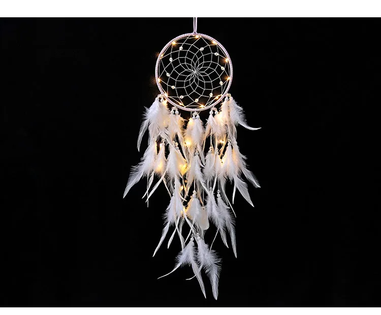 1Pcs Dream Catcher with Light Indian Style National Feather Dreamcatcher Wall Hanging Ornaments Wind Chime Girls Room Decoration