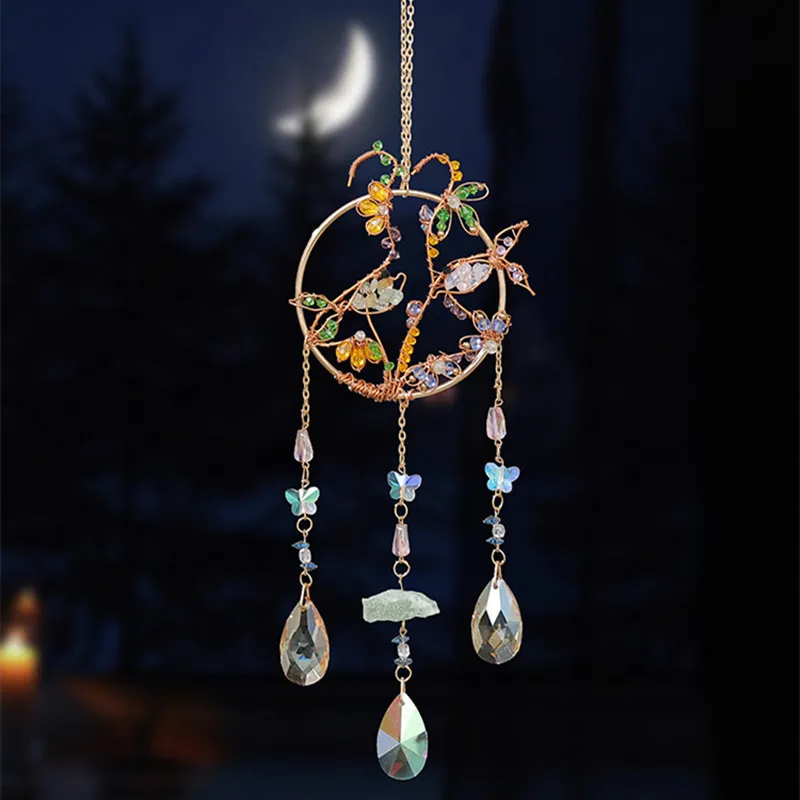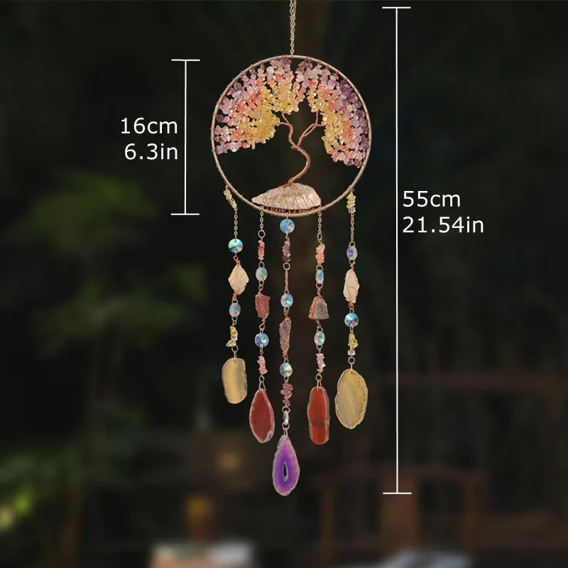 Handmade crystals gemstone tree of life sun catchers hanging wall ornaments for interior room