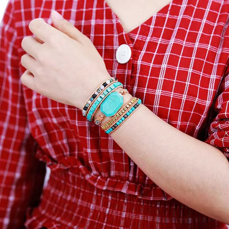 Exclusive Beaded Wrap Bracelets Boho Natural Stone Tibetan Beads Leather Wrap Bracelet Statement Cuff Bangles Bracelets Gifts